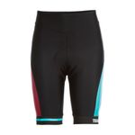 Bermuda de poliéster com elastano, de fácil lavagem e secagem. Cós anatômico, recortes laterais coloridos e detalhe de listra em uma das pernas.