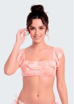 Tecido leve e extremamente confortável, composto por poliamida e elastano, toque extremamente suave, modelo tipo tomara que caia, ideal para bustos pequenos e médios, bojo interno para valorizar o decote, detalhe de costura com leve babado de ombro a ombro.