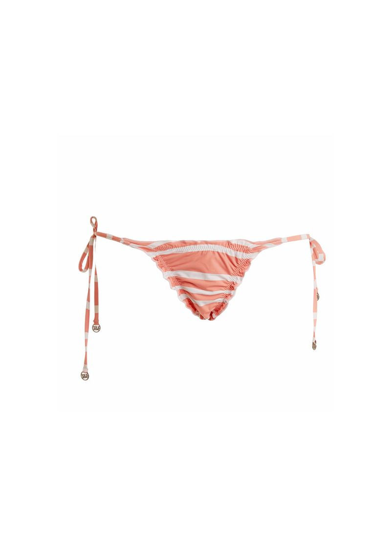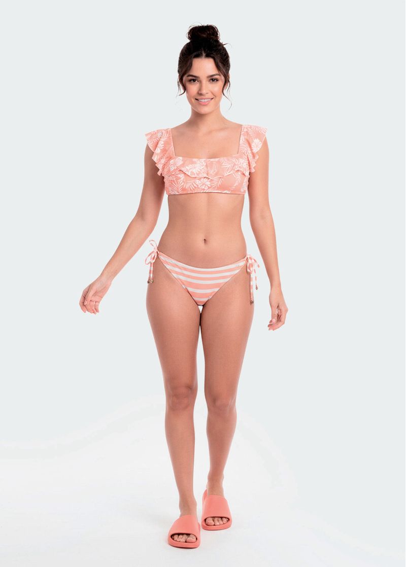 Tecido leve e extremamente confortável, composto por poliamida e elastano, toque extremamente suave, 4 ponteiras em metal com logo T&F, dando toque delicado, leve babado nas costuras, modelo de amarrar nas laterais, costura franzida nas costas que dá o efeito de contorno perfeito, valorizando o bumbum, ideal para mulheres que preferem biquínis menores, com pouca marca de sol e que valorizam o corpo. Modelo dupla face pode ser usado dos dois lados.