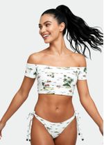 Top beach feminino confeccionado a base de poliamida e elastano, com forro e bojo interno fixo. O modelo ombro tem esse nome por conta do seu design diferenciado com gola canoa e mangas curtas, que podem tanto serem deixadas na altura dos ombros, quanto abaixadas até a metade dos braços, no estilo tomara que caia, se adequando ao seu tipo de corpo. Com abertura nas costas, conta, também, com elástico na barra.