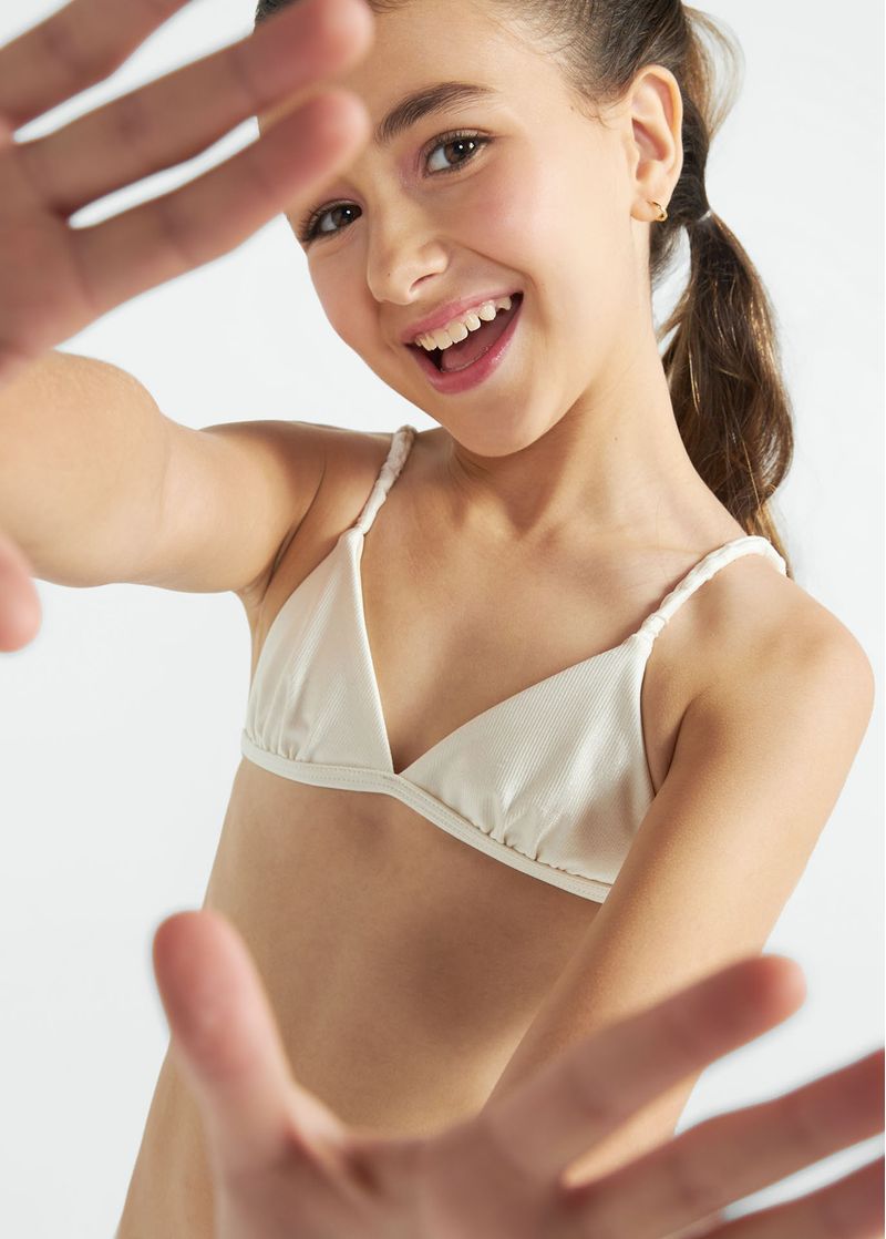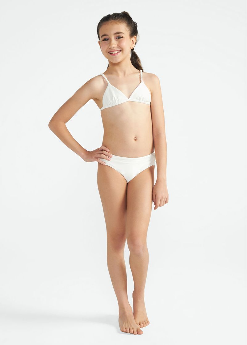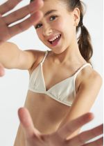 Confortável e encantador, o Biquíni Glow Kids tem top triângulo com alças reguláveis e tanga com laterais franzidas. Ideal para as pequenas curtirem o verão com brilho e movimento.