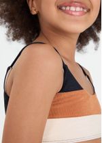 Com top e tanga, o Biquíni Kids Recortes é ideal para os dias de sol com liberdade. O visual colorido é composto por recortes em três cores e tecido com textura atoalhada que dá charme à peça.