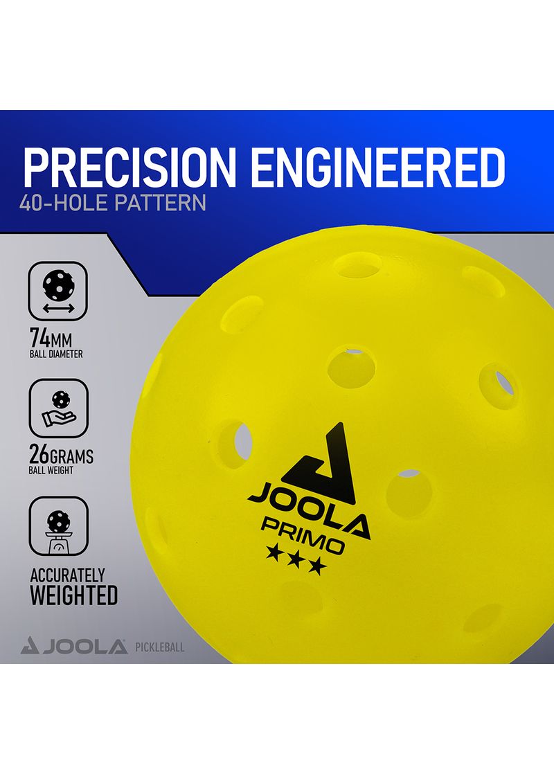 MATERIAIS DURÁVEIS: A JOOLA Primo Ball é a escolha ideal para torneios e jogos recreativos. Estas bolas oficiais para ambientes externos têm 74 mm e pesam 26 gramas. Projetada para ter um pingo excepcional e consistente que você pode confiar durante o jogo.