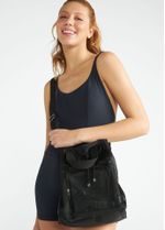 Fechamento com cadarço e bolso externo para praticidade