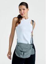 Confeccionada em nylon preto resistente, possui detalhes em metais prateados e logo Track&Field em silk. A alça fixa com regulagem permite o uso na transversal ou no ombro. Para completar o estilo, acompanha um chaveiro com mini bolso, ideal para guardar chaves ou AirPods.