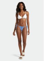Tecido leve e extremamente confortável, composto por poliamida e elastano, toque extremamente suave, modelo tradicional de amarrar nas laterais, ideal para mulheres que preferem biquínis menores e que valorizam o corpo, 4 ponteiras em metal nas amarrações com logo Track&Field.