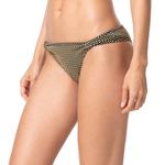 Tecido com charmosa textura retrô, composto por poliamida e elastano, Modelo básico de tanga com lateral média e reguladores de tecido no quadril para ajuste da marca.