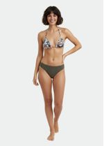 Tanga Beach Feminina Média, esse modelo tem tecido de poliamida e elastano texturizado com aspecto de escamas. Conta com forro interno, cós médio elástico e plaquinha com logo T&F atrás.