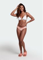 Tecido leve e extremamente confortável, composto por poliamida e elastano, toque extremamente suave, leve babado nas costuras, costura franzida nas costas que dá o efeito de contorno perfeito, valorizando a silhueta, ideal para mulheres que preferem biquínis com pouca marca de sol e que valorizam o corpo. Modelo dupla face pode ser usado dos dois lados.