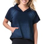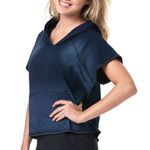 Tecido composto de algodão e elastano, modelagem cropped, capuz, barra, mangas e gola em corte a fio, bolso canguru, logo ton sur ton.