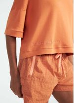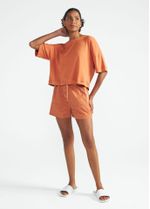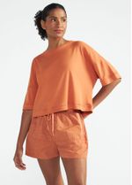 A Camiseta Feminina Manga Curta Cropped Savana une estilo urbano e leveza em uma modelagem ampla e moderna. Confeccionada em malha com efeito stone washed, possui frase bordada na barra e arte nas costas que reforçam sua identidade autêntica. Por ser uma peça em fibra natural e passar por processo de lavanderia, pode apresentar leve variação de cor ao longo das lavagens, sem comprometer sua qualidade.