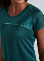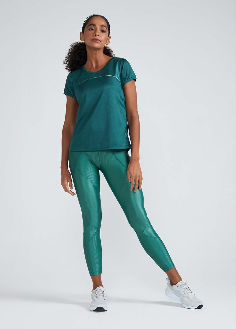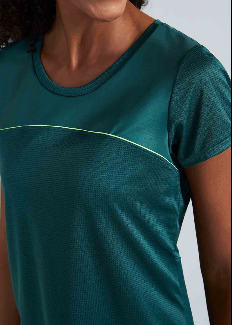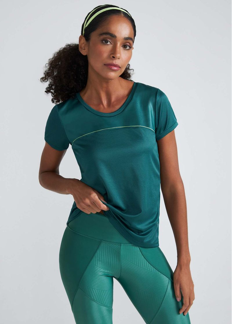 O caminho certo para quem quer arrasar na academia e nos exercícios! Esta nossa camiseta de manga curta para treino traz uma mistura de tecidos opaco e com brilho monocolor, gerando sofisticação para a peça, e detalhes em viés neon em recortes na frente criando um ar esportivo. Características: