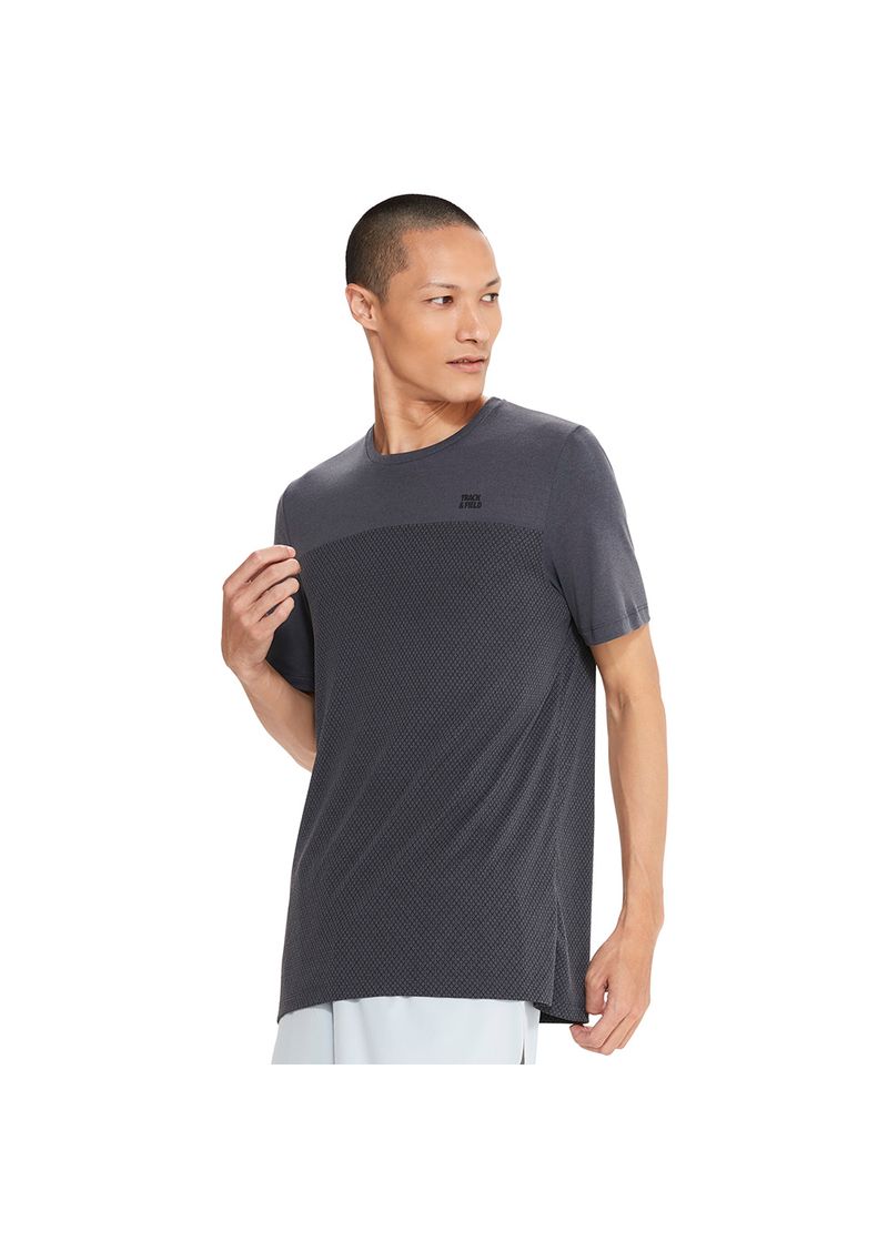 A Camiseta Equilíbrio mescla tem o decote redondo e manga curta. Sua composição 100% poliamida proporciona maior leveza, secagem rápida e toque gelado. Possui estampa ton sur ton na frente e nas costas, reproduzindo uma textura na peça.