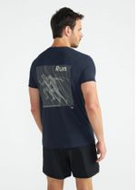 Na parte traseira, a arte apresenta uma composição dinâmica de corredores sobrepostos, com efeito de movimento que traduz a energia e a liberdade da corrida. Produzida em microcrepe com filamentos ultrafinos, a peça garante toque suave, respirabilidade e conforto térmico, acompanhando seu corpo do início ao fim do treino.