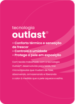 PoliamidaTecnologia OutlastLinha UV TechFator 50+ de proteçãoTecnologia Amni Soul EcoAbsorve o excesso de calorReduz super aquecimento e resfriamento