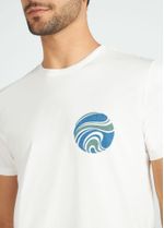 A Camiseta Nuvem aposta na leveza visual com arte circular multicolorida nas costas e versão mini no peito. Em algodão, tem caimento confortável e visual inspirado nas curvas e respiros da água.