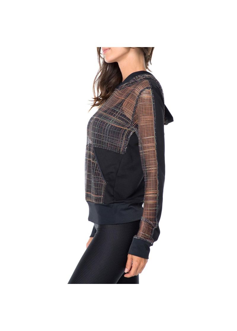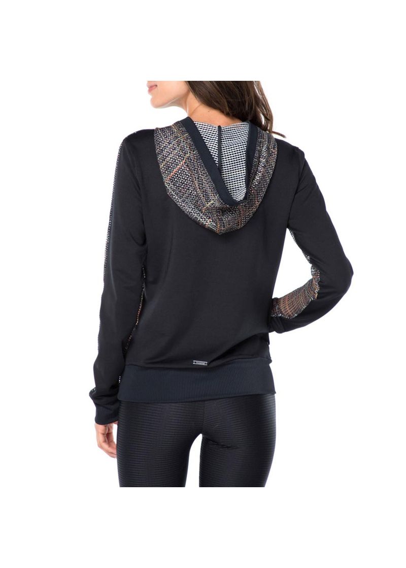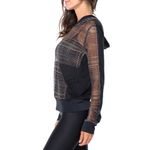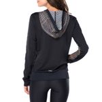 Bolso frontal, capuz, punhos com elastano, plaquinha de metal costurada e personalizada.