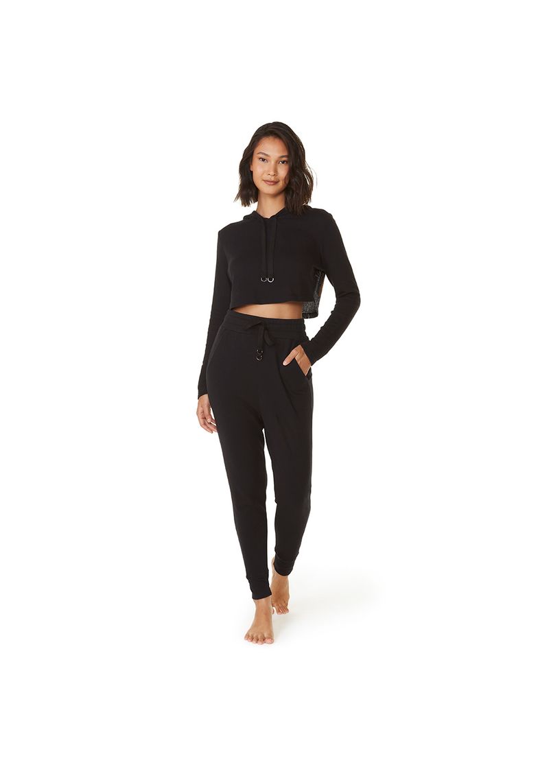 Modelo de blusa moletom cropped, ideal para passeios na praia, quando o clima não está tão quente. Conta com tecido levinho, capuz com regulagem e costas estampadas.