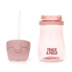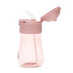 Garrafinha infantil de hidratação, em tritan, material não tóxico, livre de BPA, com capacidade para 350mL. Tampa com biqueira retrátil e canudo, com botão para abertura da tampa e desenho de bichinho com orelhas.