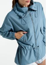 • Reguladores de metal na cintura e no capuz, para ajuste personalizado