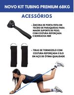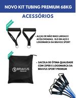 Kit Elástico Extensor Tubing Premium Bravus – Carga de até 68kg é uma solução completa para treinos de força, resistência e condicionamento físico em qualquer lugar. Desenvolvido para oferecer alta performance, o kit permite simular exercícios de academia com segurança e praticidade.