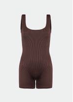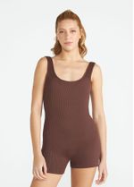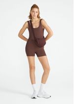 Este macaquinho curto em tecido canelado e com brilho tem um decote mais fechado na frente enquanto as costas abertas em U garantem um design moderno e sofisticado. A peça, indicada para as modalidades training e yoga, oferece conforto e sustentação na medida certa.