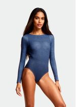 Tecido leve extremamente confortável, composto por poliamida e elastano, toque extremamente suave. Body com decote alto na frente e costas com decote profundo e mangas longas. Possui bojo para melhor sustentação.
