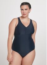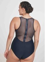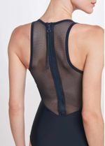 Modelo com decote em V, recortes no busto, tela e zíper com puxador personalizado na parte de trás. Sua modelagem proporciona liberdade de movimento na prática dos esportes aquáticos. Por utilizar tecnologia de fio LYCRA® XTRA LIFE o elastano resiste 10 vezes mais ao cloro do que um elastano comum.