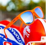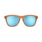 Goodr Donkey Goggles trazem armação laranja vibrante com lentes espelhadas azul reflectivas. São ideais para quem quer se destacar e manter o foco: com tecnologia “No Slip, No Bounce” e lentes polarizadas UV400, acompanham seu ritmo com estabilidade e proteção total.