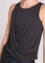 Com a textura suave do seu tecido trabalhado, esta regata tem também o detalhe de transpasse na frente. Decote redondo fechado, comprimento levemente mais curto e logo Track & Field refletivo.