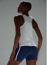 Leve e funcional, a Regata Reflective é ideal para quem busca frescor e praticidade. Seu tecido de secagem rápida mantém a pele seca, enquanto os acabamentos selados no decote e cavas proporcionam um visual sofisticado. Nas costas, os furos a laser garantem respirabilidade extra e os detalhes refletivos oferecem maior segurança para treinos noturnos.