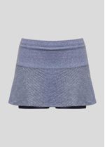 Saia mescla de modelagem godê com tecido furadinho, composta por tecido de cós de elástico, cordão regulador para melhores ajustes, bermuda interna de compressão moderada com bolso sobreposto e logo Track&Field refletivo na lateral da saia, que proporciona segurança nas atividades noturnas.
