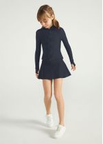 A Saia Infantil Powercool® une frescor, conforto e versatilidade para o dia a dia. Com modelagem evasê leve e bermuda interna, proporciona segurança e liberdade de movimento para brincar, correr ou praticar esportes como tênis e beach tennis. O tecido exclusivo Powercool® auxilia na manutenção da pele seca e da temperatura corporal equilibrada, tornando a peça ideal para diferentes ocasiões.