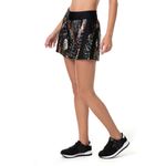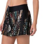 Saia toda recortada em tecido de poliamida com elastano, cós anatômico que modela o corpo, cordão regulador interno na cintura, bermuda interna com bolsinho lateral para guardar pequenos objetos, plaquinha de metal personalizada na frente.
