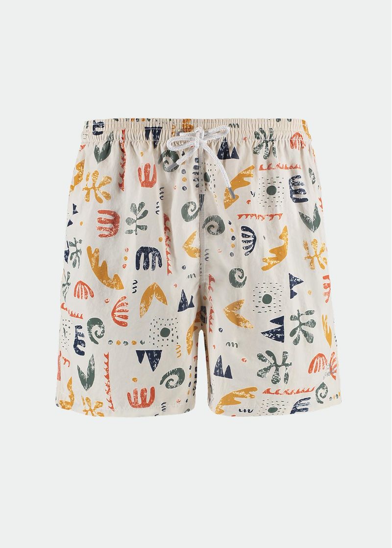 Possui cós com elástico e cordão regulador com ponteiras emborrachadasO modelo conta com bolsos laterais, bolso interno para pequenos objetos e bolso traseiro com fechamento em velcroEstampas exclusivas e tecido com secagem rápida