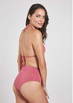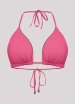 Um top de biquíni cortininha com bojo fixo e tecido leve, confortável e de toque extremamente suave. Além disso, esse top é muito versátil, uma vez que é dupla-face e permite várias amarrações no pescoço e nas costas.