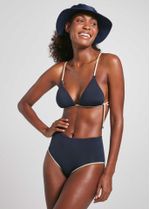 Um top de biquíni cortininha com bojo fixo e tecido leve, confortável e de toque extremamente suave. Além disso, esse top é muito versátil, uma vez que é dupla-face e permite várias amarrações no pescoço e nas costas.