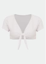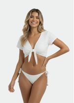 Top Paz do tipo cropped, o modelo conta com tecido feito em poliamida e elastano, com bojo removível, forro e mangas curtas.