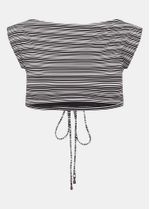 Tecido com charmosa textura de listras, exclusivo Track&Field, composto por poliamida e elastano, modelo tipo cropped com amarração nas costas, ideal para bustos pequenos e médios, bojo que gera maior sustentação, metal delicado com formato de abacaxi, dando toque sofisticado à peça.