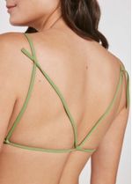 Um top de biquíni com bojo removível, alças finas e a possibilidade de fazer várias amarrações.