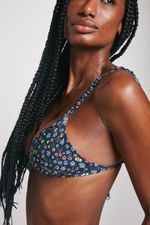 Bojo removível Ideal para bustos pequenos e médios Tecido leve e confortávelModelo cortininha Estampa exclusiva de floresAlças com elástico franzido Ponteiras com logo T&F.