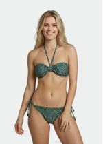 A família Ondas apresenta um mix de estampas diferenciado e moderno, em que a combinação das cores azul e verde em configuração de ondulação e o floral garantem a novidade. Tecido leve extremamente confortável, composto por poliamida e elastano, toque extremamente suave. Modelo tipo tomara que caia, ideal para bustos pequenos e médios, bojo removível que gera maior sustentação.