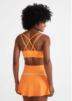 O Top Active combina design delicado e funcional para esportes de raquete. A peça traz bojo, recorte frontal com viés branco que contorna e valoriza o busto, além de alças finas brancas cruzadas nas costas com nó decorativo para um toque de estilo.