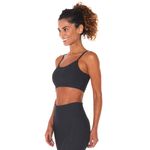 Top liso básicoMescla escuroBojo discretoAlças finasFácil de combinarBaixo impacto