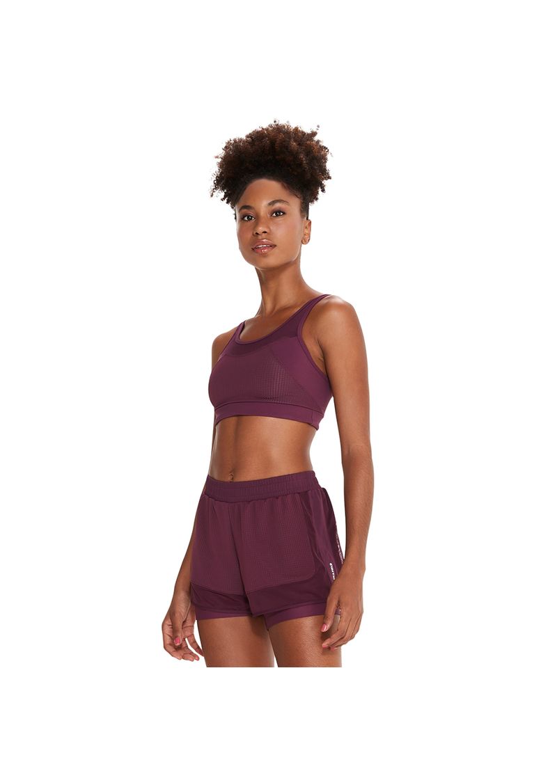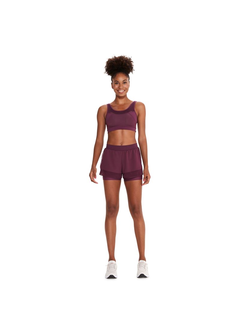 Poliamida e elastanoMédio impactoDecote redondo frente e costasLogo refletivoMalha com texturaRecortes em tuleSecagem rápida