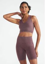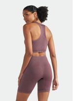 Top de baixo impacto com pontos canelados, decote em V frontal e costas em estilo nadador. O acabamento das cavas e do decote em viés confere acabamento limpo e conforto. Com lavagem especial que proporciona aparência estonada, disponível : rosa malva e verde cinzento. Desenvolvido com tecnologia Seamless® em máquinas circulares especiais, reduz o número de costuras, oferecendo mais conforto, liberdade de movimento, alto poder de compressão e excelente maleabilidade. Parte visual: plaquinha de metal com logo Track&Field nas costas.